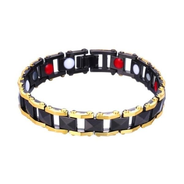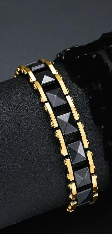 MENS BRACELET. Fancey two-tone, black and gold Magnetic bracelet.