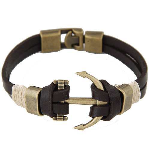 Ships anchor bracelet, Leather band with brace and rope accent.