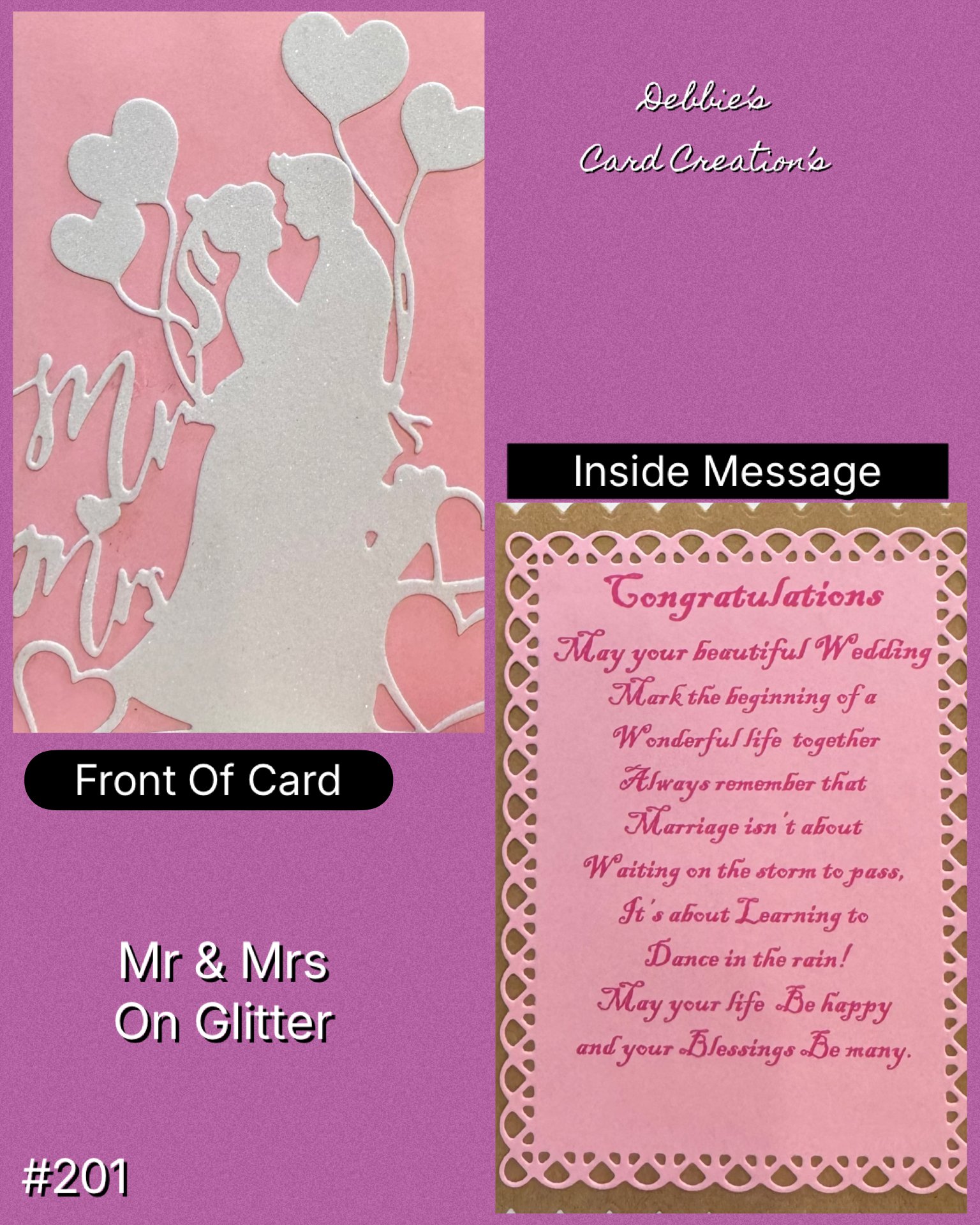 Mr. & Mrs. Bride & Groom on Glitter Card.